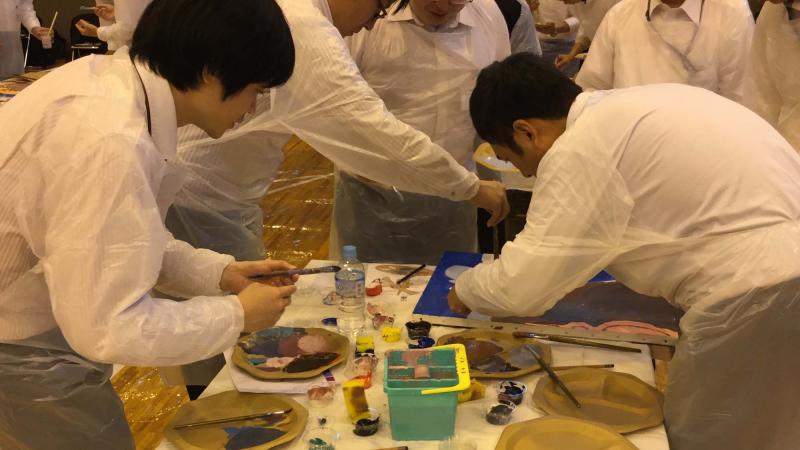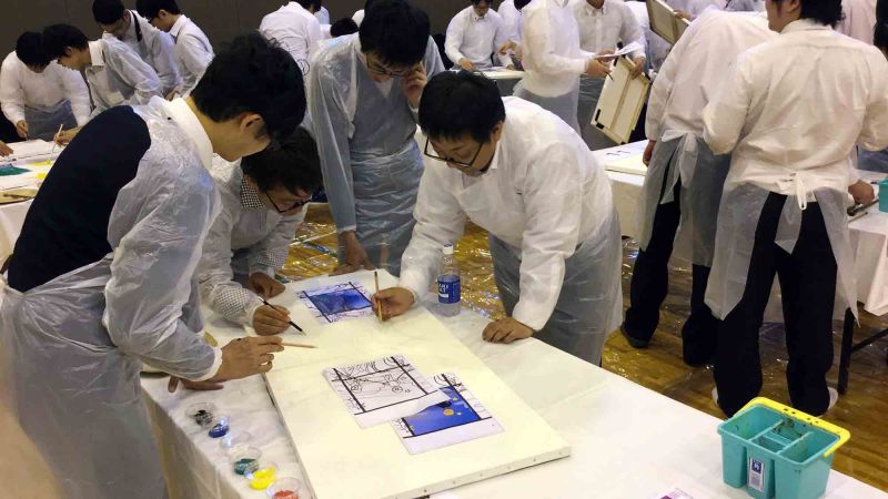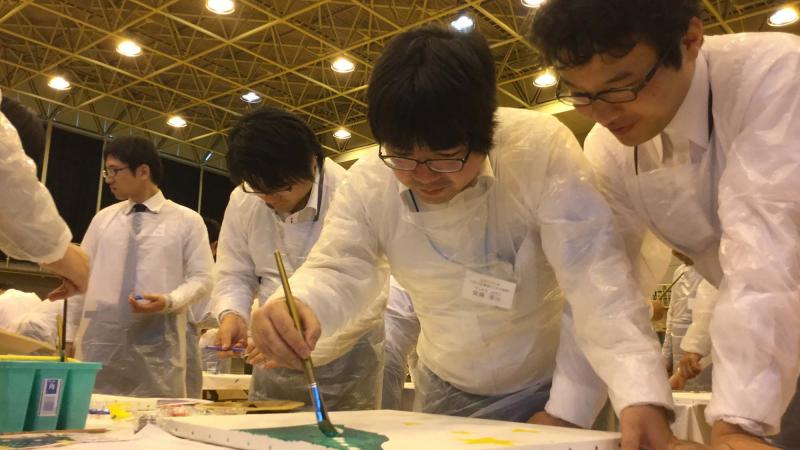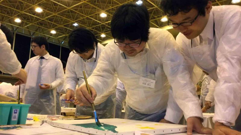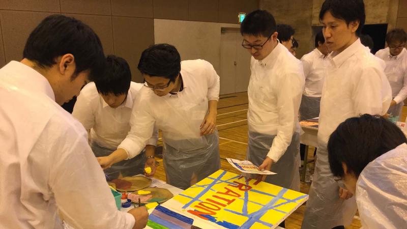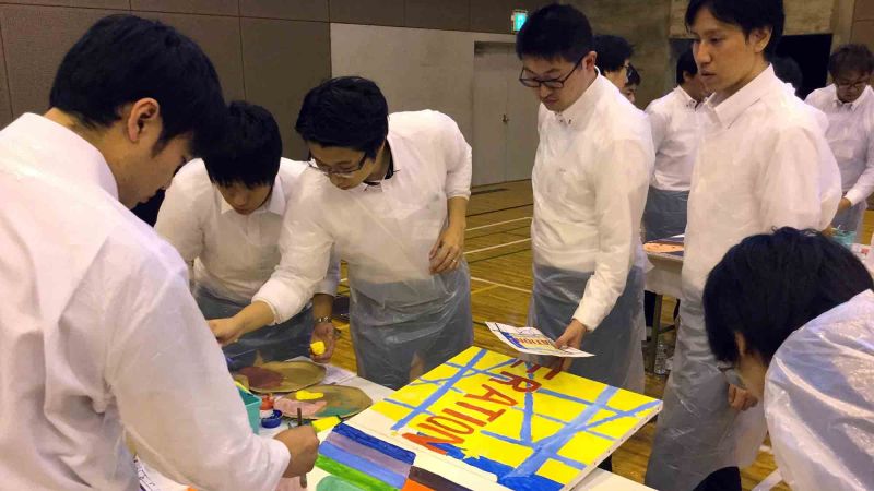 The Big Picture team building exercise commences with individuals joining into small teams. Teams collect brushes, paint, a diagram outlining their individual canvas and, a blank canvas. They then set about as a team to mix paints to create the right colors and paint their canvas. Soon into the exercise, teams realize that in order for the overall artwork to be successful they need to collaborate with other teams. Once complete, the highlight of The Big Picture is the final reveal where, following a debriefing session, the masterpiece is unveiled to all participants for the first time, which always results in loud cheers and thunderous applause.